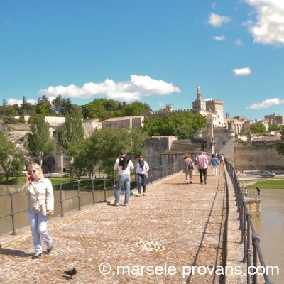 Пройдя через тенистый парк, разбитый при Урбане V, спуститесь к реке Роне, тихие воды которой ласкают знаменитый Авиньонский мост Св. Бенезета (pont St. Bezenet) - символ и миф, воспетый в известной песне. От легендарного Авиньонского моста недалеко до площади Курантов, где под сенью платанов расположились кафе и рестораны, предлагающие огромный выбор местных вин домов Бом-де-Вениз и Кот-дю-Рон.